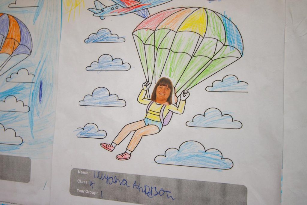 Meanwhile, the schools in the trust are going to great heights to show how much they care. Mandy Lockwood, a teaching assistant at Hartburn, has volunteered to skydive from 10,000 feet, at Shotton Airfield, to raise funds for Mrs Park’s Park. “I wanted to do something out of my comfort zone. It’s scary but I keep thinking it’s nothing compared to what Claire’s going through,” says Mandy, apologising for having to wipe away tears. To help with her fundraising, a colouring competition has been launched. For a minimum donation of £1, the children get to colour a picture of Mandy with a parachute.